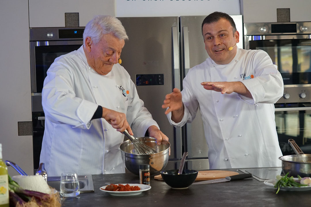 Fabio Campoli ai fornelli con il maestro e il grande amico Gerardo Sacco