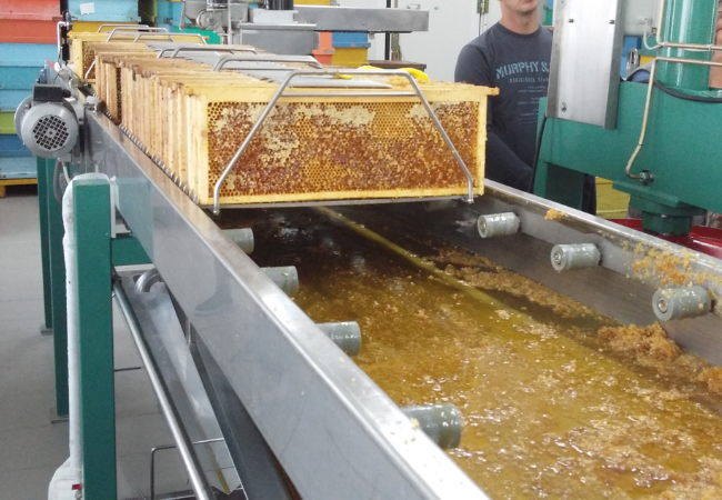 La lavorazione dell’uomo inizia dove finisce quella dell’ape. Nella moderna apicoltura le api accumulano il miele prodotto nei favi contenuti non più negli alveari naturali ma in specifiche strutture chiamate melari. Al momento opportuno l’apicoltore decide di togliere i melari dall’arnia per portarli in laboratorio ed iniziare l’estrazione del miele. Una volta rimosso il tappo cerato delle cellette, i telai vengono posti nello smielatore che, grazie alla forza centrifuga, fa fuoriuscire il miele.