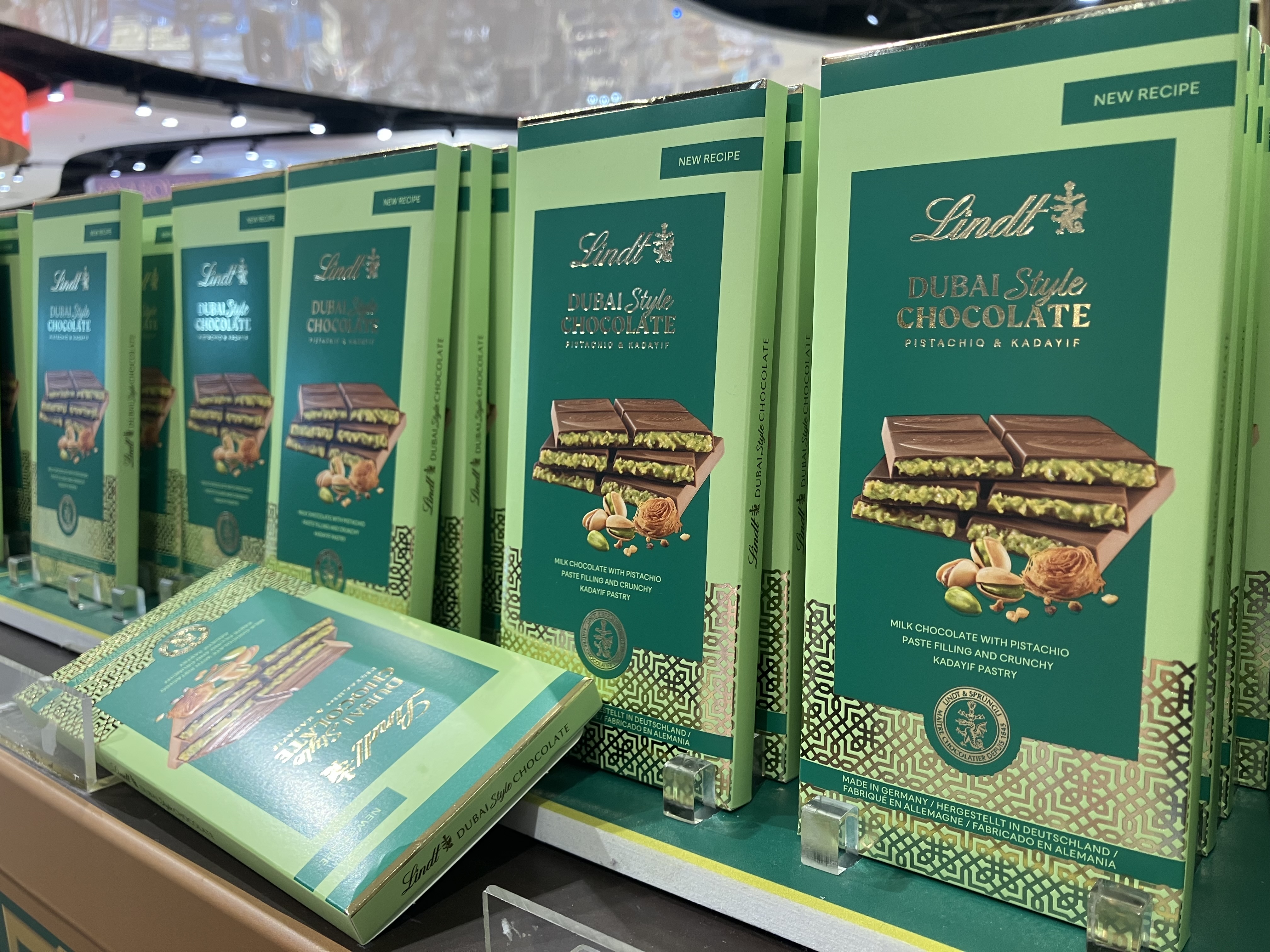 L'operazione di lancio della Lindt Dubai Chocolade si è basata sulla sua unicità, in quanto prodotto artigianale e dagli ingredienti esclusivi, dalla produzione inizialmente limitata e dal costo esagerato, tutti motivi che inducono il consumatore a ritenerlo davvero speciale. Ma come è fatto? Una tavoletta di cioccolato di Dubai consiste di un guscio di cioccolato al latte o fondente, decorato con colate di cioccolato bianco e a volte con motivi colorati, il cui ripieno è fatto con pasta kataifi, crema di pistacchio e salsa tahina. La kataifi è una pasta a base di farina e acqua confezionata in sottilissimi spaghetti simili a fili di seta o capelli d’angelo, adoperata largamente nella cucina dei Paesi dell’Est asiatico soprattutto nei dessert tra i quali il famoso kanafeh.