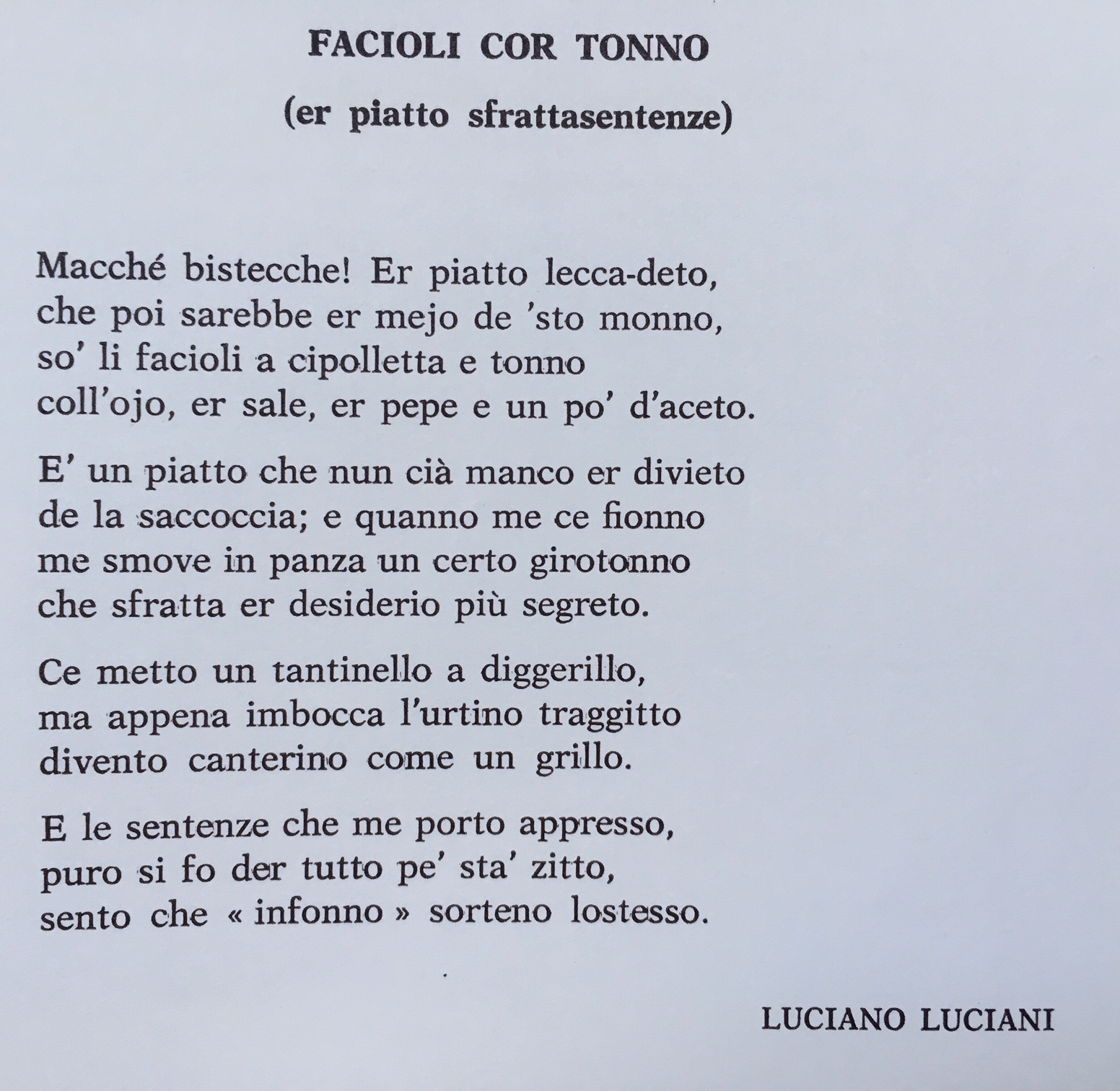 I versi in dialetto romanesco di Luciano Luciani dedicati alla deliziosa semplicità dell'abbinamento tra fagioli e tonno in tavola