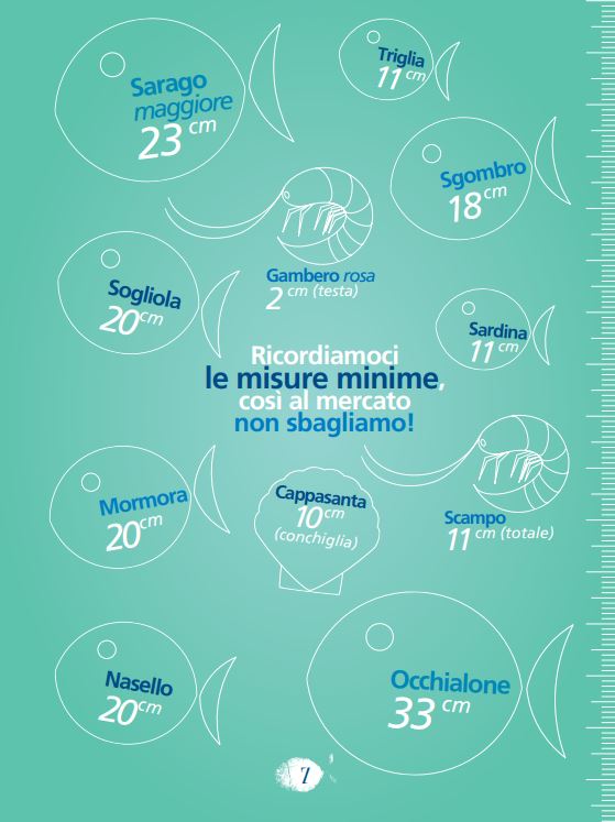 Come recita l’opuscolo: “Queste norme servono a proteggere le risorse ittiche, ma sono troppo spesso ignorate da chi pesca e da chi acquista. Consumare pesci in età giovanile (o addirittura appena nati come nel caso dei bianchetti) significa ostacolare la riproduzione di quella specie, perché solo gli esemplari che giungono a maturità possono riprodursi e mantenere quindi l’equilibrio della catena”.