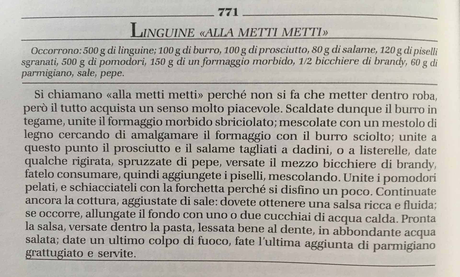 “Linguine alla metti metti” – tratto da “Il nuovo codice della pasta”, V. Buonassisi, Edizioni Rizzoli 1985