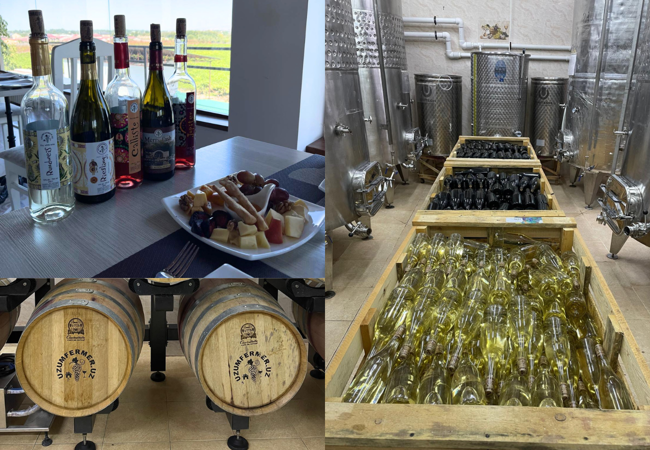 Le principali aree vinicole del paese si trovano attorno a Samarcanda, Tashkent, Bukhara e nella valle di Fergana. Ogni zona ha una sua identità, determinata da altitudine, suolo e microclima. Samarcanda, ad esempio, si distingue per i suoi vini rossi intensi e liquorosi, mentre la valle di Fergana è più vocata alla produzione di uva da tavola e da essiccare. Tashkent, con il suo clima secco e le moderne infrastrutture, ha favorito l’emergere di nuove cantine con spirito internazionale. Tra queste spiccano la storica Cantina Khovrenko, la prima a essere fondata in epoca moderna, oggi anche sede di un interessante museo del vino, e la più giovane e dinamica Uzumfermer, situata alle porte della capitale.