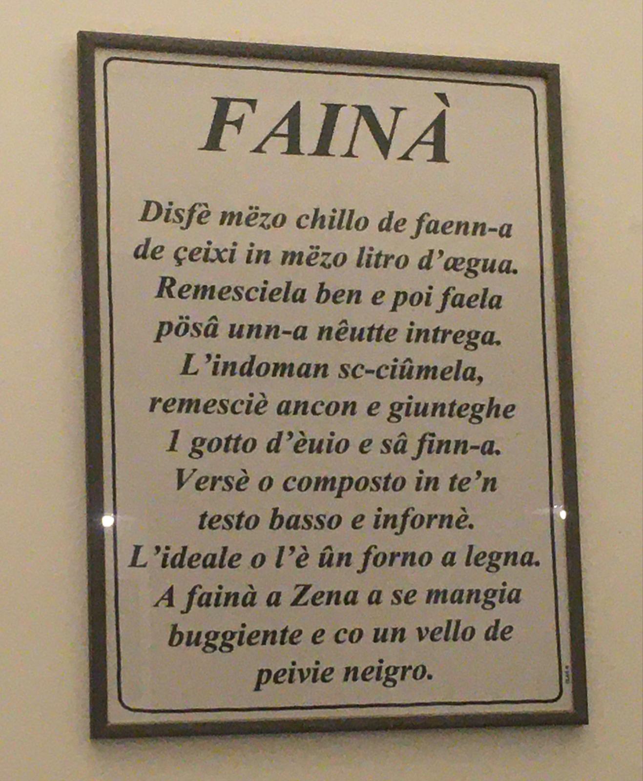 Fotografia della ricetta della farinata di ceci esposta nel locale Da Franz & Co., a Genova
