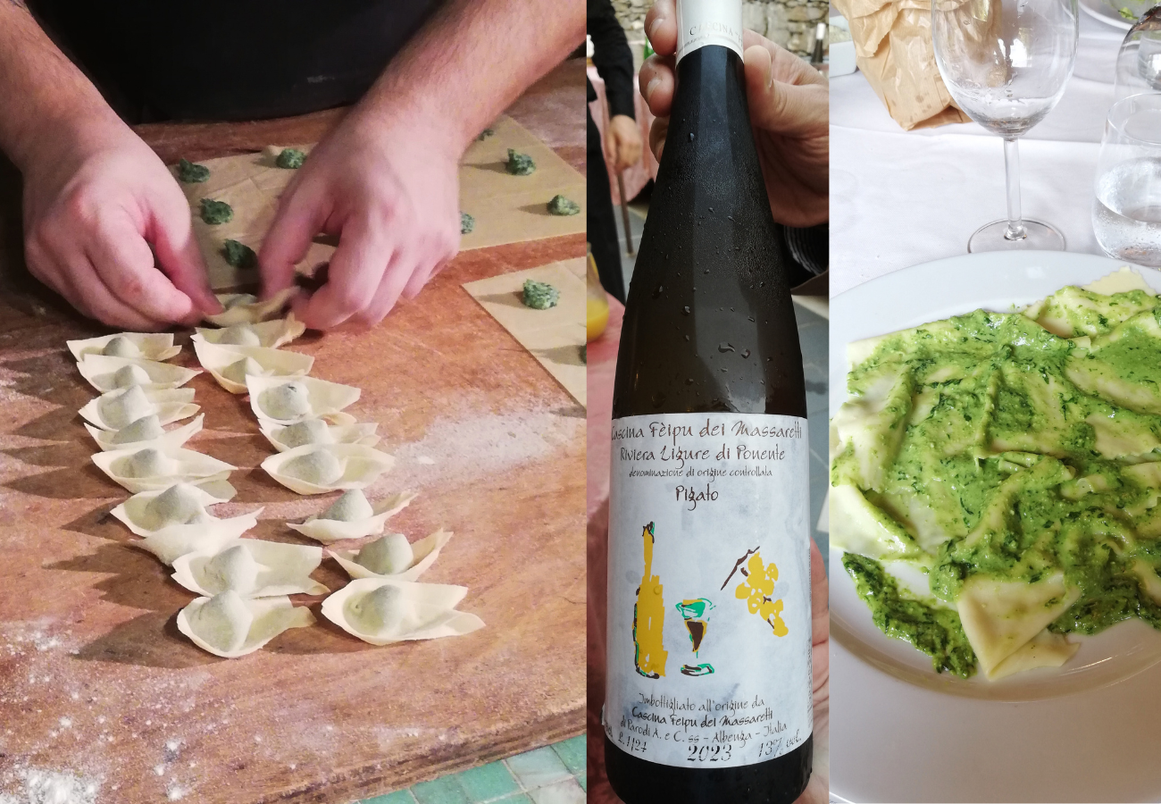Il vitigno del Pigato è considerato una varietà di Vermentino e produce un vino bianco dal colore giallo paglierino e con una intensa profumazione di macchia mediterranea, va servito fresco e consumato giovane, entro 3 anni dalla vendemmia. Tra un bagno e l’altro nel bellissimo mare di Recco, quest’anno anche Bandiera Blu, potrete ampliare le vostre tentazioni golose, lasciandovi conquistare anche dai pansotti, una tipica pasta fresca ripiena locale farcita alle erbe e servita con crema alle noci, o ancora dai mandilli realizzati a mano, e secondo la tipica ricetta locale serviti al pesto.