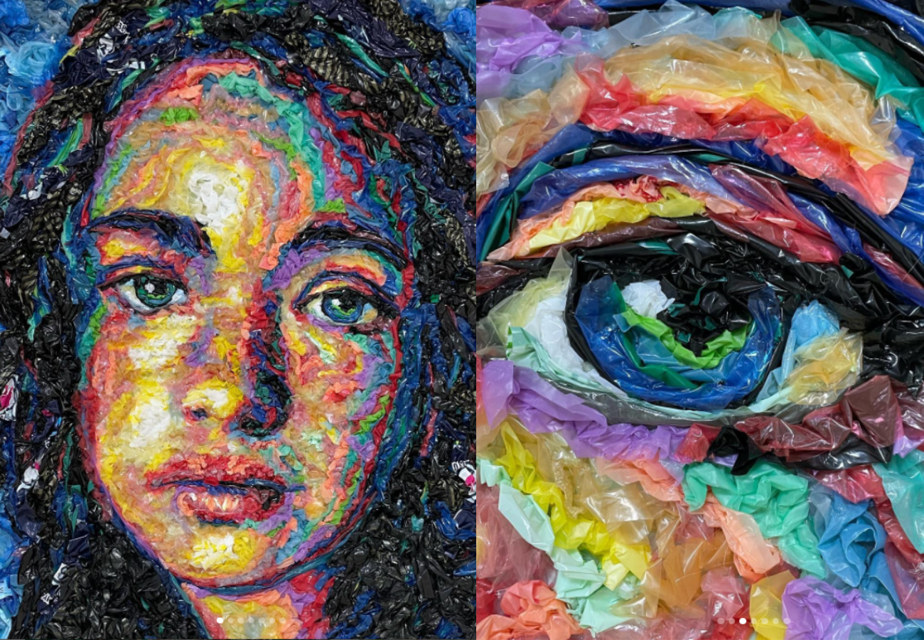 L’artista turca che trasforma tappi, bottiglie e buste di plastica (ma anche gomitoli, cavi e ritagli di jeans) in splendidi quadri